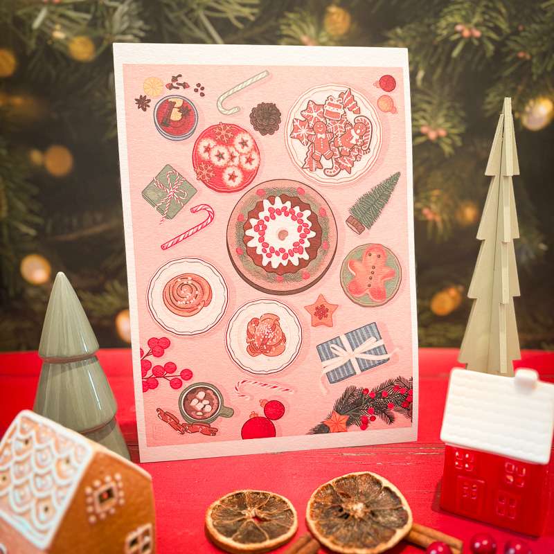 Table de Noël regroupe les incontournables gourmandises de nombreux pays : Kannelbullar suédois, mince pies anglais, paperkakor scandinaves, pudding de Noël et Mannele alsacien. Une invitation à voyager à travers les saveurs de Noël, à déguster visuellement sans modération. Complète ton achat avec les recettes de décembre et transforme ta déco en festin !