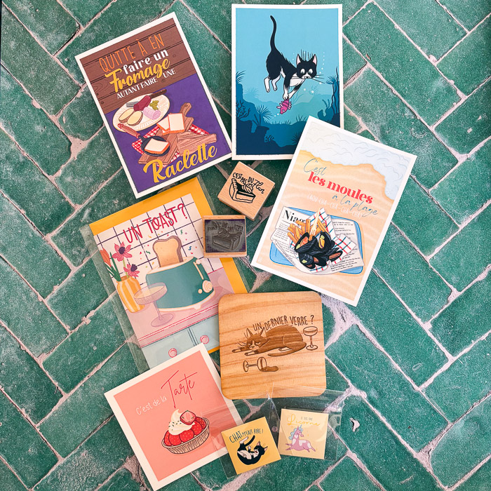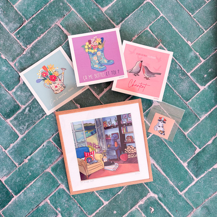 J’adore créer des petits objets qui font du bien — à accrocher, à envoyer, à poser sur un frigo, à offrir sans raison ou à se garder sans honte. Des cartes, des illustrations, des magnets, des tampons… des choses qui mettent de la couleur et de la bonne humeur dans le quotidien.