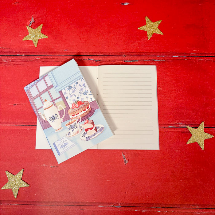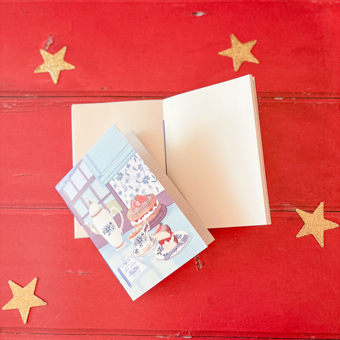 Ce petit carnet de 36 pages est prêt à accueillir tes plus beaux textes ou dessins ou à offrir à quelqu’un qui aime les ambiances cosy, les romans anglais et les goûters raffinés.