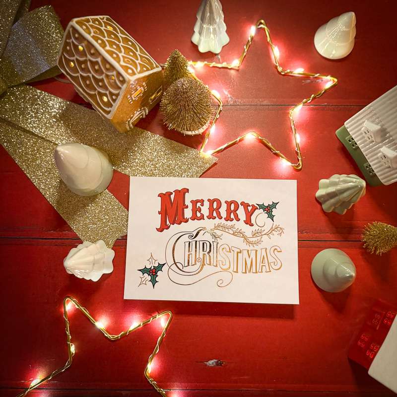 Ces deux cartes en typographie gothique sont issues de la collection « Noël traditionnel ». Vous pouvez opter pour la version rouge, la version verte ou le lot de deux cartes !