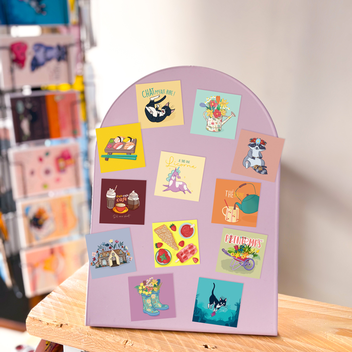 Après les cartes et les porte-clés, voici les magnets — parce qu’un frigo sans illustration, c’est triste.