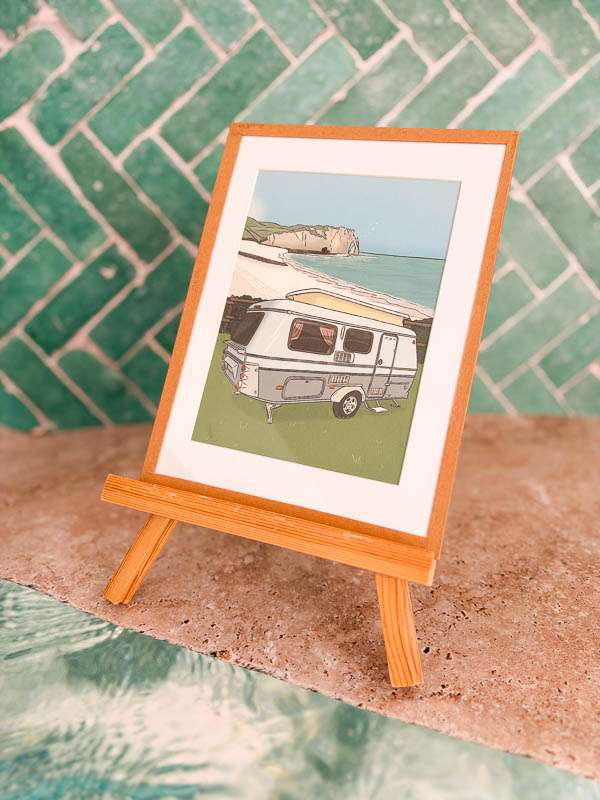 Mathilde m’a confiée son projet d’illustration pour offrir à son compagnon Romain un souvenir unique de leur premier weekend avec leur joli camping-car récemment acquis. Un weekend à Etretat…