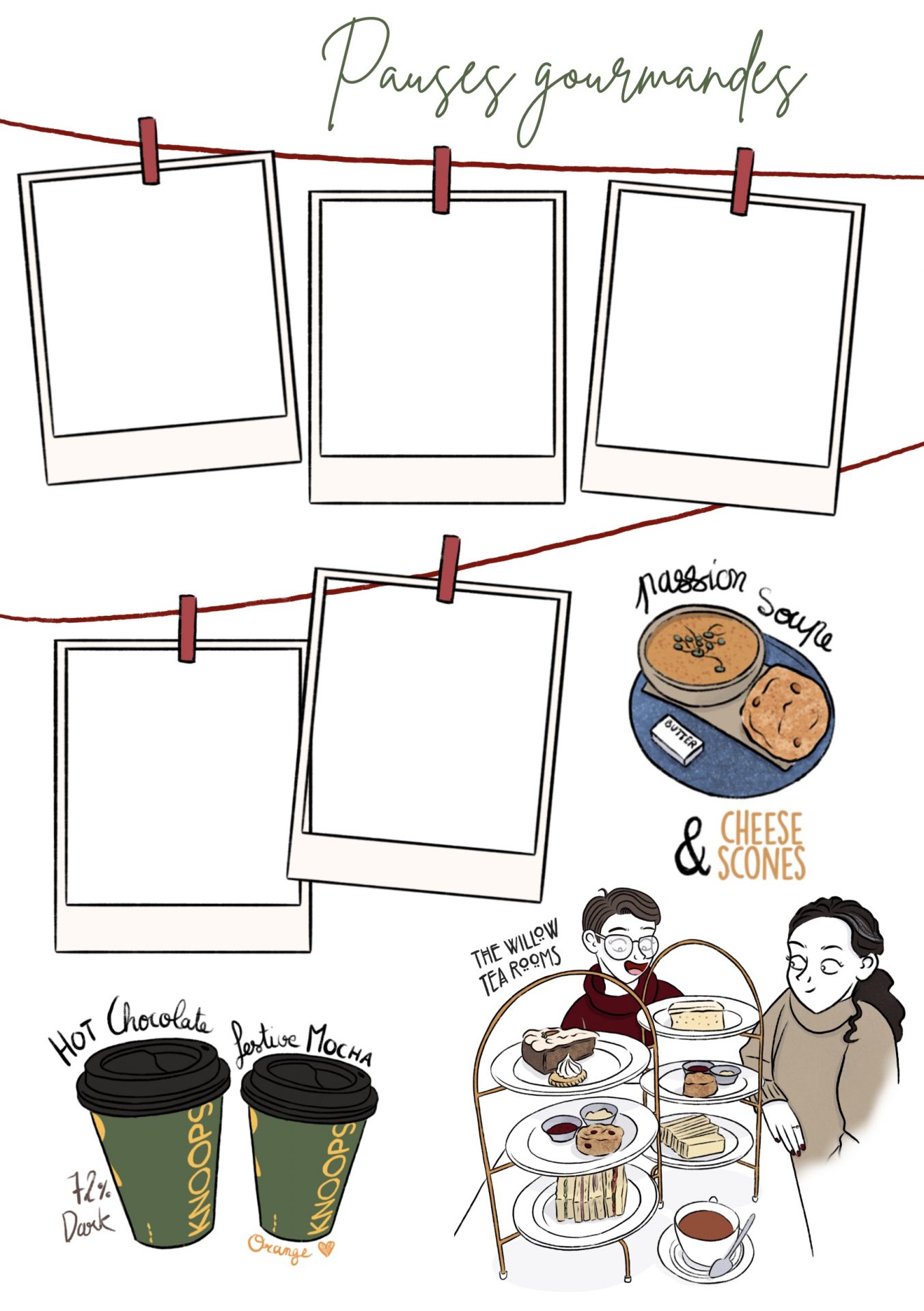 Carnet de voyage pour Sylvia, mêlant illustrations originales, photographies et anecdotes personnelles, pour raconter ses aventures avec poésie, couleurs et un regard unique sur chaque lieu.
